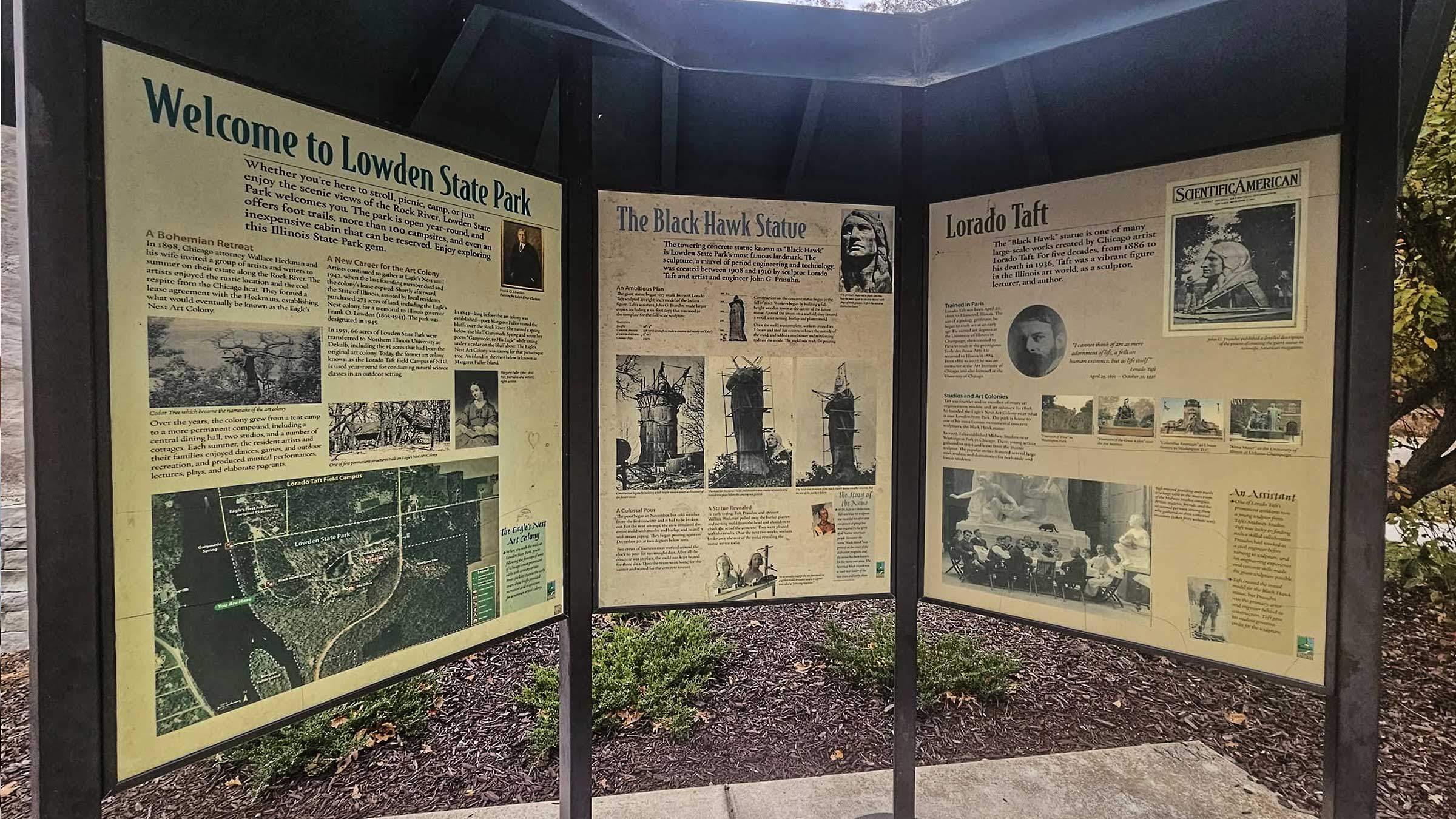 One of the park’s most notable features is the iconic Black Hawk Statue, which overlooks the Rock River from a nearby bluff. The surrounding trails and scenic overlooks make it easy for campers to spend time hiking, birdwatching, or simply taking in the views. Fishing and paddling opportunities are also available along the river.